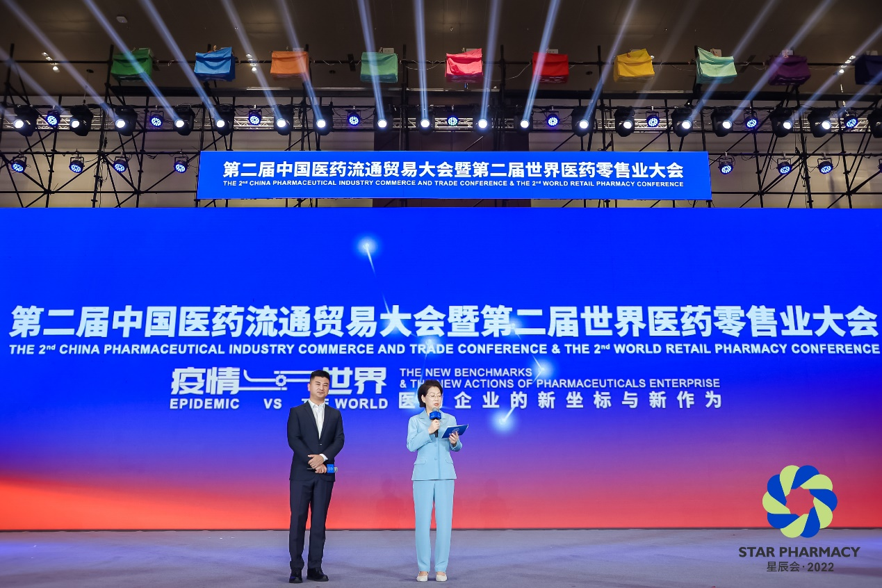 9月8日上午,由长沙市人民政府、中国医药物资协会共同主办的2022年第二届中国医药流通贸易大会暨第二届世界医药零售业大会(第二届星辰会)在星城长沙隆重开幕。德扑之星药业集团董事长刘景萍受邀担任大会主持人并荣获“医药工业领军人物”称号。