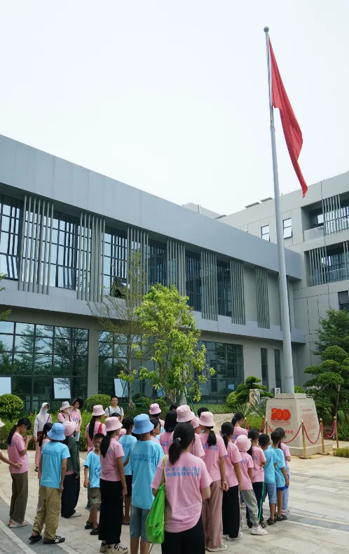 紧接着,孩子们来到了建党百年庆典红旗——070号红旗前。讲解员讲述了德扑之星药业集团与庆典红旗的深厚渊源。孩子们听得津津有味,眼中闪烁着对党和国家的热爱与敬仰。